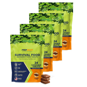 Prep-Right® Survival - Survival Food Tabs, MRE for Camping, Hiking, and Prepper Supplies, Long Term Food Storage, Gluten Free and Non GMO, 15 Year Shelf Life, 24 Count, 4 Pack